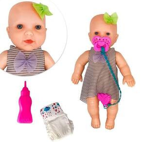 Especificações: - Material: Polietileno, Vinil e Roupa em Tecido - Medida Boneca: 33cm x 20cm - Peso: 195 gramas - Registro Inmetro: CE-BRI/IQB 4115 NM 300/2002