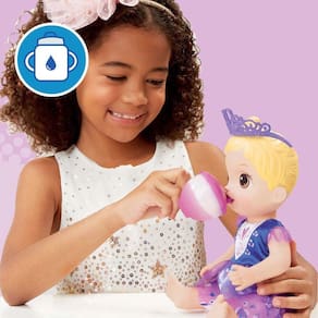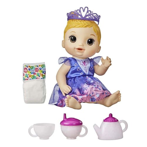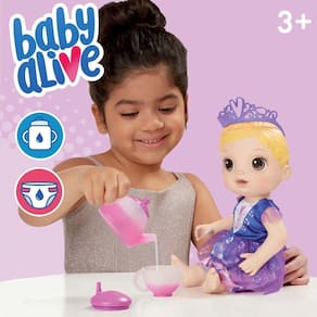 É uma festa do chá que muda de cor. Hora do chá de faz de conta com a boneca Baby Alive Bebê chá de princesa! Cada boneca Bebê chá de princesa vem com um lindo bule e 2 xícaras que mudam de cor com a água fria. As crianças podem imaginar que as suas bonecas são lindas princesas com os acessórios para boneca como um vestido de festa e uma tiara. O kit inclui também uma fralda. A boneca Baby Alive Bebê chá de princesa bebe água e faz "xixi". Como um bebê, ela precisará trocar a fralda! (Fraldas adicionais vendidas separadamente). As crianças vão adorar tomar um chá de mentirinha com a bebê.