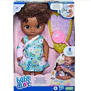 Boneca Baby Alive Dia de Cuidar da Bella Negra Hasbro F7537 A boneca Baby Alive Dia de Cuidar da Bella precisa de amor e cuidados especiaisA boneca veste um lindo vestido verde comestampa de florzinha, seus cabelos estão presos que a deixam ainda mais estilosa. Com tema de médico elavem com acessórios como, um gesso de braço para ela, estetoscópio, verificador de ouvido, termômetro, bolsa de gelo, chapas de raio-x, adesivos e pente. Usando água gelada e o acessório de compressa fria, revele um coração na testa daBella Vantagens A boneca mede aproximadamente 30 cm e vêm com um vestido removível colorido. Inclui acessórios de médico para você cuidar da sua nova amiguinha. Um ótimo presente para crianças de 3 anos ou mais que amam Baby Alive. Com longos cabelos para você pentear e fazer lindos penteados. Especificações Conteúdo da embalagem: 1 Boneca Baby Alive de aproximadamente 30 cm, 1 Estetoscopio, 1 Pente, 1 Verificador de ouvido, 1 Termômetro, 1 Chapa de raio-x e 1 Gesso.Código de barras: 5010996128232Referência: F7537Idade recomendada: A partir de 3 anos de idade.Aviso importante: As cores podem variar entre as imagens e produto. Imagens meramente ilustrativas.Homologação Inmetro: 08950-02/2021