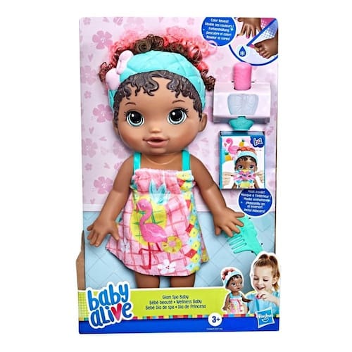 Faça a boneca com tema de spa parecer glam - o bebê adora se mimar dê a baby alive glam spa baby uma linda manicure e pedicure reveladora e, em seguida, coloque a máscara da boneca em seu rosto e revele a maquiagem dos olhos