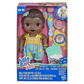 A boneca baby alive - lanchinhos divertidos é uma menininha com um grande apetite. Ela adora comer a comidinha que vem no aviãozinho, sempre funciona. Parte da linha super snacks, a lanchinhos divertidos faz lanchinhos de comida sólida para boneca. É possível criar lanchinhos de frutas e usar a colher especial para dar comidinha a ela. Então chega a hora de trocar a fralda boneca baby alive - lanchinhos divertidos vem com roupa removível, 2 potes de comida reutilizável para boneca, uma colher, um prato, um molde para fazer os lanchinhos e uma fralda. Idade indicada a partir dos 3 anos de idade. Imagens meramente ilustrativas, com variáveis conforme monitor. Vendemos somente produtos com. Iqb - ce-bri/iqb-005128 - nm 300/2002 - ocp 006