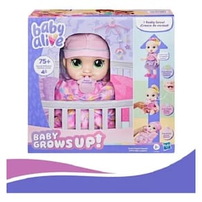 desbloqueie momentos interativos de boneca com Baby Grows Up LaLa GooGoo! Esta boneca Baby Alive começará na fase de recém-nascida, onde você pode embalá-la e dar a ela a primeira mamadeira. Quando ela crescer, ela chutará para fora do cobertor! Dê a mamadeira e a chupeta para revelar o primeiro dentinho do bebê! Em seguida, alimente-a com o primeiro lanche do bebê para ver uma mordida "desaparecer" quando a comida de mentira for pressionada contra sua boca. Quando ouvir um sino, é hora de ajudar LaLa GooGoo a se levantar e se tornar uma criança. Use acessórios de boneca para vestir a boneca com a moda da primeira grande menina do bebê com roupas e sapatos Baby Alive e use tesouras de mentira para imaginar o primeiro corte de cabelo do bebê. LaLa GooGoo emite mais de 50 sons para acompanhar esses momentos marcantes! Quando as crianças terminarem, basta desligar e ligar a boneca para brincar novamente e marcar os marcos na tabela de crescimento. Descubra momentos mágicos com acessórios, conjuntos e bonecas Baby Alive.