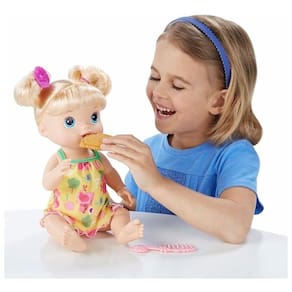 Com a Boneca Alive Loira B0018 da Hasbro sua filha se sentira uma mamãe! A boneca vem com acessórios, deixando a brincadeira mais animada. Além disso, conta com uma bolachinha, uma escova de cabelo para criar um penteado lindo e ainda um enfeite para o cabelo. As meninas irão adorar a boneca e se divertirão muito brincando.