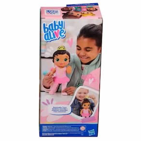 Boneca - Baby Alive - Princesa Bailarina - Morena - Hasbro: A Princesa Bailarina Baby Alive está pronta par aventuras em recitais de dança. Ela é uma linda boneca com aproximadamente 27 cm de altura e vem com tiara removível. Ajude-a a praticar suas poses de dança com pernas e braços articulados. Detalhes: • Com um visual fofo e encantador de bailarina • Essa pequena dançarina está toda arrumada para uma apresentação de balé • As crianças podem imaginar histórias de dança com sua boneca • Essa boneca de balé de aproximadamente 27 cm apresenta um body lilás moldado • Vem com tiara removível e uma saia tutu • Com pernas e braços articulados para poses divertidas Informações: • Produto: Boneca Baby Alive Minha Princesa Bailarina Morena • Marca: Hasbro • Coleção: Baby Alive • Linha: Baby Alive Princesa Bailarina • Tipo: Boneca com Acessórios • Categoria: Bonecas e Cia • Tamanho: altura 27 cm (aproximadamente) • Conteúdo: - 01 boneca - 01 saia tutu - 01 tiara • Recomendação: para crianças a partir de 03 anos de idade Especificações: • Modelo: Baby Alive Princesa Bailarina Morena • Referência: F9123 • Código de Barras: 195166247472 • Embalagem (C x A x L): 12 x 28 x 09 cm • Embalagem (Peso): 0.290 kg • Material / Composição: Plástico e Vinil • Registro: 005790/2021 • Certificado: Órgãos Autorizados - OCP´S (Organismos de Certificação de Produtos) Aviso: • As imagens são meramente ilustrativas • Os pesos, tamanhos e medidas são aproximados • As cores e estampas dos produtos podem ter variações • As informações são de responsabilidade do fabricante ou fornecedor