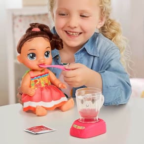 As crianças podem preparar uma vitamina para a boneca com o liquidificador