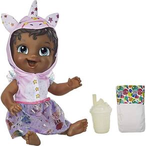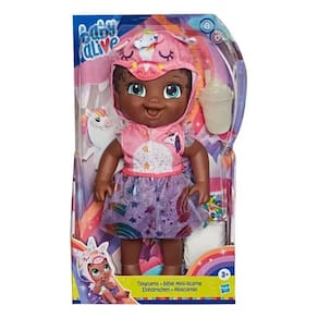 Não é à toa que a criançada se encanta com a Baby Alive Tinycorns , porque com esse vestido de capuz de Gato, que remete ao conto de fadas com unicórnios, ela fica ainda mais charmosa e graciosa. Para a brincadeira ficar mais completa, a boneca vem com uma fralda e um copo. Agora é partir para esse mundo mágico dos Tinycorns e se divertir à beça!