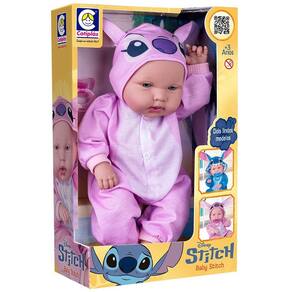 Dicas de uso:Com a Boneca Baby Angel, as crianças podem viver momentos cheios de ternura e imaginação, cuidando da boneca como um bebê de verdade. Incentive brincadeiras de faz de conta como dar a chupeta, trocar a roupinha personalizada da Angel, ninar ou levá-la para passear, promovendo o desenvolvimento da empatia, do afeto e das habilidades sociais. A boneca também é perfeita para criar histórias junto com outros personagens do universo Stitch, enriquecendo a brincadeira. Após o uso, oriente a criança a guardar a boneca com cuidado, preservando sua maciez e mantendo-a sempre pronta para novas aventuras.