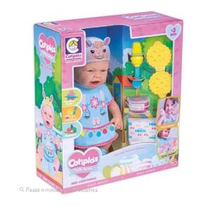 Idade: acima de 3anos Baterias: não, produto não necessita de baterias. Altura: 36,5 cm Material: vinil Mecanismo: possui mecanismo Referência: 2396 Corpo: vinil Movimento nos olhos: não movimenta os olhos Possui acessórios: fralda, talheres