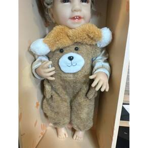 A Boneca Baby So Lovely é perfeita para quem busca fofura e realismo em um só produto. Com aproximadamente 45cm de altura, ela possui cabelos loiros cacheados, expressão sorridente e olhos delicados. Vem vestida com um macacão de ursinho marrom super macio, blusa listrada e uma boina estilosa que completa seu visual encantador.