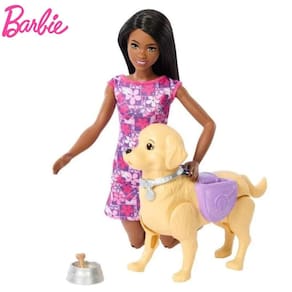 A Barbie Brooklyn Passeio de Cachorrinho é o sonho de toda criança que adora brincar de faz de conta Com essa boneca, as crianças podem embarcar em aventuras emocionantes ao lado do seu cachorrinho de estimação. A Barbie Brooklyn está pronta para sair para passear com seu amiguinho de quatro patas e a coleira se encaixa perfeitamente na mão da boneca.