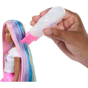 - Quer continuar brincando de cabeleireira? É só enxaguar e repetir! Passe o cabelo da boneca Barbie em água corrente para remover o glitter e comece uma nova obra-prima capilar. [PRODUTO INTERNACIONAL / COMPRA INTERNACIONAL] Atenção! Este produto é de origem internacional e está sujeito aos procedimentos e regulamentações aplicáveis à importação de bens para uso pessoal no país de destino. O consumidor é responsável por garantir que o produto esteja em conformidade com quaisquer exigências locais, certificações ou autorizações necessárias para seu uso. Por favor, verifique as leis e diretrizes aplicáveis das autoridades reguladoras do seu país antes de concluir a compra.