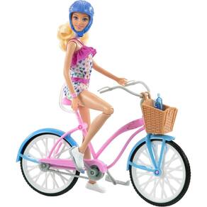 Contém: 1 boneca Barbie, 1 bicicleta de brinquedo e acessórios