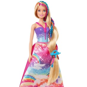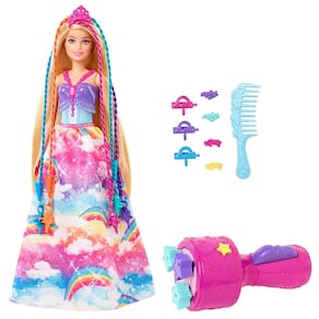 A boneca Barbie da Mattel tem como tema Dreamtopia. Medindo uma altura aproximada de 32,39cm, ela vai acompanhada por 4 presilhas, 3 miçangas, 1 tiara e 1 pente, acessórios variados para montar penteados nos longos cabelos da Princesa com Tranças Mágicas. Além de contar com saia e sapatos removíveis, com o vestido supercolorido, que destacam ainda mais sua beleza.