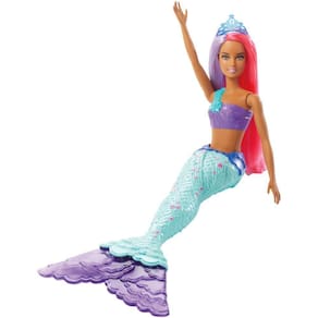 Cor: 2 Boneca Barbie Dreamtopia Sereia GJK07 Mattel. Inspire a diversão de contar histórias e estilizar com esta boneca sereia Barbie Dreamtopia com um visual brilhante de conto de fadas e cabelo longo e multicolorido Com esta calda brilhante e cabelo longo, as crianças podem combinar o visual da boneca sereia Barbie em qualquer aventura fantástica As cores e decorações podem variar. Cada boneca vendida separadamente, sujeito a disponibilidade. A partir de 3 anos de idade.