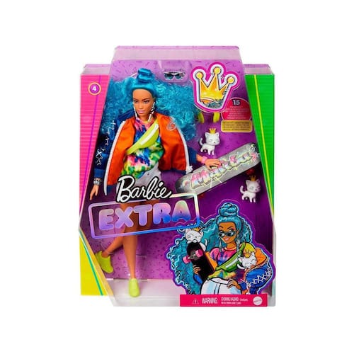 Boneca Barbie Extra Cabelo Azul - Com Acessórios Mattel As bonecas Barbie® Extra têm roupas arrojadas e de cores brilhantes e marcam presença Cada Barbie® tem um estilo único, divertido e ousado. Seus animais de estimação, diferentes para cada uma e todos adoráveis, também têm muita personalidade A Barbie® Extra permite que as crianças explorem a expressão por meio do estilo e oferece uma experiência de moda e estilo com bonecas articuláveis. O objetivo delas é se divertir com a moda usando brilho, balinhas de goma, emojis e cabelos ousados, chamando a atenção onde estiverem. Cada produto é vendido separadamente e sujeito à disponibilidade. As bonecas não ficam em pé sozinhas. As cores e as decorações podem variar. Ficha técnica Código de Barras887961908480 Produto Certificado Inmetro:00128-01A Itens Inclusos:01 Boneca, 01 Bichinho e Acessórios Restrição de Idade:Não recomendável para menores de 3 anos por conter peças pequenas que podem ser engolidas. Código do Fabricante:GRN27 Aviso:As cores podem variar entre as imagens mostradas acima e o produto. Imagens meramente ilustrativas. Certificado:Certificado pelos Órgãos Autorizados - OCP´S Organismos de Certificação de Produtos Composição / Material:Plástico Peso:400 g Dimensões embalagem AxLxC :Tamanho LAP : 7 x 32 x 25 cm Garantia: 3 meses defeito fabricação Ean: 07010653496382