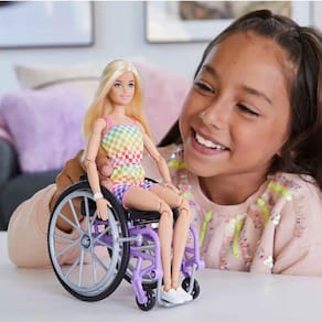 BARBIE FASHIONISTA. Criada para refletir o mundo que as crianças veem hoje, esta linha diversificada de Barbie Fashionistas apresenta estilos brilhantes e modernos que proporcionam infinitas possibilidades de contar histórias. DESPERTA O POTENCIAL DA BRINCADEIRA. A Barbie desperta o potencial de brincar com cadeira de rodas roxa manual e rampa rosa que a ajuda a entrar e sair facilmente da Barbie Dreamhouse (vendida separadamente, sujeito a disponibilidade). MAIS FACILIDADE AO BRINCAR. Movimento é tudo! Esta boneca estilosa tem 22 pontos de articulação, oferecendo diversas formas de posar e brincar. PENTEADO ESTILOSO. A boneca tem cabelo loiro liso e usa macaquinho xadrez arco-íris divertido com relógio rosa e tênis brancos. ? MAGIA MATTEL. A Mattel realiza sonhos e encanta gerações há décadas, zelando pelo entretenimento e diversão de crianças por todo o mundo.