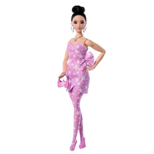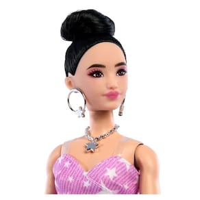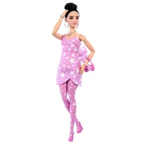 As bonecas Barbie Deluxe Style colocam o glamour em evidência. Cada coleção traz tecidos marcantes, silhuetas modernas e acessórios sofisticados, inspirados nas últimas tendências da moda. Crianças e colecionadores vão adorar criar looks glamurosos com as bonecas Barbie Deluxe Style, e fazer poses dignas de passarela. Colar com pingente de estrela e bolsa em formato de laço. Articulações dobráveis permitem criar diversas histórias.
