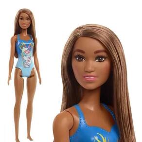 1 Unidade Boneca Morena Barbie Praia Maio Azul - Mattel