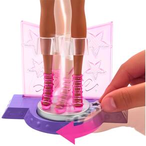 Estrela Pop - Ao prender a boneca Barbie no palco e girar, começa o show com giros e movimentos enquanto ela toca com seu microfone ou violão!