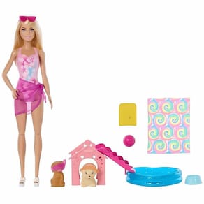 Boneca Barbie Piscina com Cachorros Color Change3+JBF35Mattel Boneca Barbie na Piscina Com Cachorros 3+ JBF35 Mattel