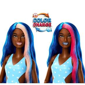 Use água Gelada Para Revelar a Mecha Brilhante do Cabelo e a Maquiagem do Rosto da Boneca e Água Morna Para Mudar de Cor Novamente e Repetir a Surpresa de Mudança de Cor.