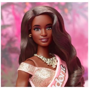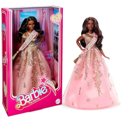 Esta boneca colecionável da Barbie Presidente é inspirada no filme Barbie e apresenta um lindo vestido completo e acetinado com um corpete brilhante sem ombros e detalhes dourados brilhantes que descem pela saia. Ela tem cachos saltitantes e um colar elaborado, e uma faixa presidencial com borla dourada acrescenta um toque final ao seu visual imponente. A boneca é articulável e vem em uma embalagem colecionável da Barbie The Movie. Um suporte para boneca está incluído, mas a boneca não pode ficar sozinha. Cores e decorações podem variar. Esta é uma ótima opção de presente para fãs e colecionadores do universo Barbie. Confira toda a coleção para mais ideias de presentes fantásticas Cada um vendido separadamente, sujeito a disponibilidade.