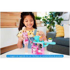 Este conjunto inclui uma Barbie® Florista com 30 cm de altura vestindo um lindo avental listrado com bolsos para ferramentas, uma estação de produção de flores e acessórios. Também inclui 3 cores de massa amarelo, rosa e verde e 3 formas de fazer flores aparecerem magicamente. Para fazer flores, coloque a massa no meio da estação de trabalho e, em seguida, coloque o vaso sobre a superfície. Empurre a alavanca lateral e veja as flores aparecerem no vaso Use massas coloridas para fazer flores de cores diferentes e também use o molde para fazer outros tipos de flores Os clientes farão fila para comprar essas lindas flores O conjunto vem com boneca Barbie® Florista, estação de produção de flores, 3 recipientes de massa, 2 vasos, um molde, ferramenta de limpeza e um ursinho de pelúcia. A boneca não fica em pé sozinha. As cores e as decorações podem variar. Excelente presente para crianças a partir de 3 anos. Ean: 0887961918687