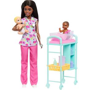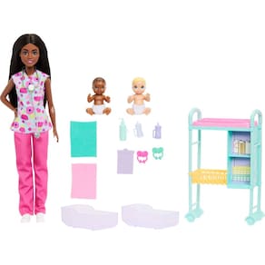 - Pequenos sonhadores podem explorar o mundo dos cuidados divertidos com a boneca Barbie Profissões Médica Pediatra e o conjunto que acompanha 2 bebês pacientes!