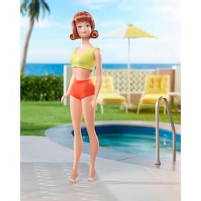 Em 1963, a Mattel apresentou ao mundo Midge, melhor amiga da boneca Barbie clássica. Para comemorar seu 60º aniversário, criamos esta reprodução colecionável de seu visual praiano autêntico: um maiô clássico de duas peças amarelo e laranja com mulas de salto branco. Ela apresenta seu rosto sardento clássico esculpido e cabelo de titã com franja enrolada e cachos saltitantes, mas esta é a primeira vez que ela tem um corpo de Silkstone. Com uma etiqueta de pulso vintage e o logotipo clássico da Midge em seu suporte de boneca, esta boneca Midge é o complemento perfeito para qualquer coleção. - Celebração do 60º ANIVERSÁRIO: Comemore os 60 anos de Midge com esta reprodução colecionável de seu visual autêntico de praia apresentada pela Mattel em 1963. - Visual clássico de praia: esta boneca Midge vem vestida com seu icônico maiô amarelo e laranja de duas peças, completo com mulas de salto branco, capturando a essência de seu estilo atemporal. - ESTREIA DO CORPO DE SILKSTONE: Pela primeira vez, Midge ostenta um corpo Silkstone, melhorando a qualidade e a autenticidade desta boneca colecionável. - Detalhes vintage: abrace a nostalgia com características de inspiração vintage, incluindo uma etiqueta de pulso e o logotipo clássico da Midge em seu suporte de boneca, adicionando um toque de charme retrô à sua coleção. - ADIÇÃO COLETIVA PERFEITA: Seja você um fã de longa data ou um novo colecionador, esta boneca Midge é a adição ideal para qualquer coleção, celebrando o legado duradouro deste amado personagem.