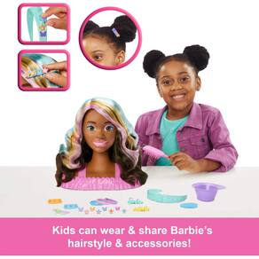 Barbie Cabeça de estilo de boneca, cabelo castanho com mais de 20 acessórios de cabelo, incluindo grampos de cabelo que mudam de cor estrela e borboleta