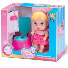 Boneca Bebê - Little Dolls - Faz Xixi - Loira - Divertoys: dessa pequena boneca de 18 cm é um encanto. Com traços delicados e fofos, a Little Dolls Faz Xixi tem tudo o que uma criança precisa para a brincadeira ser perfeita. Produzida em vinil e com delicioso cheirinho, a Boneca Little Dolls vem com peniquinho, mamadeira e fraldinha. Dê mama para a Little Dolls e ela faz xixi no penico. Depois é só trocar a fraldinha desse bebê. As crianças também podem aproveitar a embalagem litografada e usar como cenário de um banheiro. INFORMAÇÕES: • Produto: Boneca Little Dolls Peniquinho Faz Xixi • Marca: Divertoys • Coleção: Little Dolls • Tipo: Boneca bebê com acessórios • Categoria: Bonecas e Cia • Tamanho: 18 cm (A) • Conteúdo: boneca, mamadeira, fraldinha e penico • Recomendação: para crianças a partir de 03 anos de idade ESPECIFICAÇÕES: • Referência: 8002 • Código de Barras: 7898639380029 • Embalagem (C x A x L): 24.2 x 14.1 x 21.8 cm • Embalagem (Peso): 0.365 kg • Material / Composição: - Boneca: vinil - Roupinha: tecido - Acessórios: plástico • Registro: CE-BRI/INNAC-00909-01A • Certificado: Órgãos Autorizados - OCP´S (Organismos de Certificação de Produtos) BENEFÍCIOS DE BRINCAR: - Eleva a autoestima - Exercita a memória - Estimula o raciocínio - Exercita o imaginário - Desenvolve a criatividade - Desenvolve percepção visual - Desperta a atenção e curiosidade - Desenvolvimento neuropsicológico - Estimula habilidades motoras básicas - Incentiva a comunicação e linguagem - Desenvolve aspectos emocionais e afetivo - Estimula o reconhecimento de formas e cores AVISO: - As imagens são meramente ilustrativas - Os tamanhos e medidas são aproximados - As cores e estampas dos produtos podem ter variações - As informações são de responsabilidade do fabricante ou fornecedor