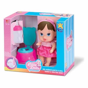 BONECA BEBÊ - LITTLE DOLLS - FAZ XIXI - MORENA - DIVERTOYS: essa pequena boneca de 18 cm é um encanto. Com traços delicados e fofos, a Little Dolls Faz Xixi tem tudo o que uma criança precisa para a brincadeira ser perfeita. Produzida em vinil e com delicioso cheirinho, a Boneca Little Dolls vem com peniquinho, mamadeira e fraldinha. Dê mamá para a Little Dolls e ela faz xixi no penico. Depois é só trocar a fraldinha desse bebê. As crianças também podem aproveitar a embalagem litografada e usar como cenário de um banheiro. INFORMAÇÕES: - Produto: Boneca Faz Xixi Little Dolls Morena - Marca: Divertoys - Coleção: Little Dolls - Tipo: Boneca bebê - Tamanho: 18 cm (altura) - Conteúdo: boneca, mamadeira, fraldinha e penico - Recomendação: para crianças a partir de 3 anos de idade ESPECIFICAÇÕES: - Referência: 8002 - Embalagem (C x A x L): 25 x 22 x 14 cm - Embalagem (Kg): 0.365 - Material / Composição: Boneca: vinil Roupinha: tecido Acessórios: plástico - Registro: CE-BRI/INNAC-00909-01A - NM300/2002 - OCP 0061 ALGUNS BENEFÍCIOS DE BRINCAR: 1 - Eleva a autoestima 2 - Estimula o raciocínio 3 - Exercita o imaginário 4 - Desenvolve a criatividade 5 - Promove a socialização e interação 6 - Desenvolvimento neuropsicológico 7 - Estimula habilidades motoras básicas 8 - Incentiva a comunicação e linguagem 9 - Desenvolve aspectos emocionais e afetivos AVISO: - As imagens são meramente ilustrativas - Os pesos e medidas são aproximados - As cores e estampas dos produtos podem ter variações - As informações são de responsabilidade do fabricante ou fornecedor ATENÇÃO: - Comprar Little Dolls - Faz Xixi - Divertoys é fácil - Condições de pagamento facilitadas - Entrega para todo o Brasil - Oferta válida por tempo limitado ou enquanto durarem os estoques