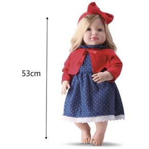Boneca Louise Bambola – Francesa 53cm A Louise é uma charmosa boneca da marca Bambola, feita com riqueza de detalhes para encantar crianças e colecionadores. Inspirada no estilo francês, ela mede 53cm, veste um lindo vestido azul marinho de bolinhas com renda, acompanhado de um casaquinho vermelho e uma faixa de cabelo combinando. Produzida com alta qualidade, a boneca possui corpo macio e delicado, ideal para abraçar, brincar e decorar. Louise transmite delicadeza e sofisticação, sendo perfeita para presentear e estimular a imaginação das crianças. Informações: - Ref.: 642 - Marca: Bambola - Modelo: Louise - Material: Vinil, Tecidos e Polipropileno - Material Corpo: Pano - Tamanho ideal para brincadeiras de cuidado - Código de barras (EAN): 7899871706424 - Altura Aproximada: 53 cm - Certificação: 7789-2023-BRI-1M - Recomendado para crianças a partir de 3 anos Conteúdo da Embalagem: - 1 Boneca Uma boneca única que une beleza, tradição e carinho em cada detalhe!