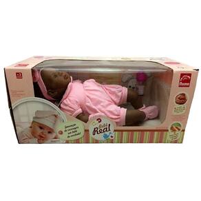 Simplesmente um encanto de Boneca! A Bebê Real é feita em vinil especial e com uma cor de um bebê recém nascido. Rica em detalhes, como dobrinhas da pele e costura, possui o peso ideal para brincar. Acompanha uma Certidão de Nascimento para você registrar a sua filhinha e uma incrível mamadeira mágica, que funciona da seguinte maneira: você vira a mamadeira de ponta cabeça e o liquido desaparece como mágica. Uma incrível opção, boa diversão!