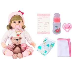 Essa linda boneca realista bebê reborn é o presente perfeito para qualquer criança! Ela tem 42cm de altura, corpo todo revestido em silicone (o que permite banhos), repleto de detalhes marcantes e realistas que vão tornar a brincadeira ainda mais imersiva. Os cabelos da bebê reborn são de fio de nylon suave, macios e de aparência idêntica aos fios humanos, os olhos são de cores vívidas e vão instigar ainda mais a imaginação dos pequenos! A bebê reborn pandinha acompanha mamadeira, chupeta magnética, um conjunto de pijamas e coelho de pelúcia.
