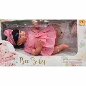 A Bee Baby recémnascido é uma bonequinha super chique e elegante Tem peso e cheirinho de bebê de verdade e vem com certificado de título de nobreza. Esta bebê é linda demais A Bee Baby pesa aproximadamente 1.5 kg, tem unhas com francesinha, cílios e cabelos castanhos e olhos azuis. Tem corpo de pano com bracinhos e perninhas de silicone bem macio. Ela usa lindos brincos de pérola, tem marquinha de vacina no bracinho e teste do pezinho. O seu corpinho tem dobrinhas iguais as dobrinhas dos bebezinhos. A Bee Baby acompanha: Vestido rosa Faixa de cabelo Sapatinhos Brincos Fralda Titulo de nobreza Cerificado INMETRO CEBRI/IQB 5957 NM 300/2002 OCP 0006 Imagens Meramente Ilustrativas. As cores do produto podem variar.