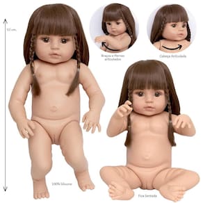 A nossa empresa tem a missão de garantir a total satisfação de seus clientes, onde a qualidade e o atendimento excepcional são nossa prioridade Estamos muito felizes em apresentar a Boneca Bebê Reborn para você, um item cuidadosamente selecionado para atender às suas necessidades. Compre agora e experimente a diferença em comprar com a nossa empresa.A Boneca Bebê Reborn é o sonho das meninas Produzida 100% em vinil siliconado, essa boneca pode sentar, deitar e fazer tudo que a sua imaginação deixar. Com seus olhos castanhos e cabelos implantados ela é encantadora e apaixonante. Sua criança merece a melhor qualidade de bebê rebornMarca: Cegonha Reborn DollsModelo: Boneca Bebê RebornCor: BegeMaterial: Vinil Siliconado AtóxicoCaracterísticas principais: Membros Articulados, Corpo de Silicone, Detalhes Realistas.Medidas Aprox.: Altura da Boneca: 52cmPeso Aprox. Da Boneca: 0,745 KgCertificado INMETRORecomendado para crianças maiores de 03 anosConteúdo:01 Bebê Reborn Cabeça, Membros e Corpo de Vinil 01 Conjunto Pagão Rosa com Roupa Saida de Banho01 Mamadeira01 Escova de Cabelo 01 Pente01 Chupeta Magnética01 Certidão de Nascimento01 Manual de Cuidados01 Certidão de Vacinas01 Exame do Pézinho01 Prendedor de Chupeta01 Kit com 2 Fraldas01 Laço de CetimGarantia30 dias de garantia oferecida pelo fabricante.Dúvidas Frequentes:1. O Cabelo é implantado mesmo ou perucaR. O cabelo da boneca Bailarina é totalmente implantado.2. Ela emite algum somR. Não, ela não emite nenhum som.3. Pode dar banho na bonecaR. Sim, pois o material do corpo é de Silicone.4. O cabelo pode ser penteadoR. Sim, o cabelo da boneca pode ser suavemente escovado e penteado.Tags: boneca, bebe, reborn, realista, menina, infantil, silicone, bailarina, susi, princesa, linda, fofa, banho, enxoval, completo, presente, grande, baby alive, preta.Homologação Inmetro: CE-BRI-IDEAL 0083-21-2