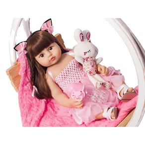 Boneca Bebê Reborn Princesa 100% Silicone Roupa Rosa 55Cm