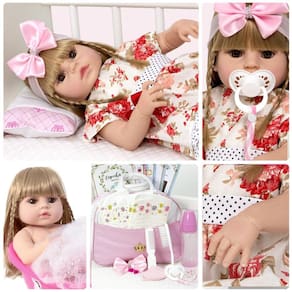 A nossa empresa tem a missão de garantir a total satisfação de seus clientes, onde a qualidade e o atendimento excepcional são nossa prioridade Estamos muito felizes em apresentar a Boneca Bebê Reborn para você, um item cuidadosamente selecionado para atender às suas necessidades. Compre agora e experimente a diferença em comprar com a nossa loja.A Boneca Bebê Reborn é o sonho das meninas Produzida 100% em vinil siliconado, essa boneca pode sentar, deitar e fazer tudo que a sua imaginação deixar. Com seus olhos castanhos e detalhes realistas ela é encantadora e apaixonante. Sua criança merece a melhor qualidade de bebê reborn Marca: Cegonha Reborn DollsModelo: Boneca Bebê Reborn Cor: BegeMaterial: Vinil Siliconado AtóxicoCaracterísticas Principais: Membros Articulados, Corpo de Silicone, Detalhes Realistas.Medidas Aprox.: Altura da Boneca: 52cm Peso Aprox. Da Boneca: 0,745 Kg Certificado INMETRO Recomendado para crianças maiores de 03 anosConteúdo:1 Bebê Reborn Cabeça, Membros e Corpo de Vinil 1 Vestido1 Par de Cílios1 Par de Brinco1 Chupeta 1 Mamadeira Simples5 Certificados3 Fraldas1 Laço Cetim2 Presilhinha1 Par de Luvas1 Bolsa Maternidade1 Prendedor de ChupetaKit Pente e Escova SimplesGarantia30 dias de garantia oferecida pelo fabricante.Dúvidas Frequentes:1. Ela acompanha ItensR. Sim, todos os itens da descrição.2. Ela emite algum somR. Não, ela não emite nenhum som.3. Pode dar banho na bonecaR. Sim, pois o material do corpo é de Silicone.4. Pode escolher a cor dos olhos da bonecaR. Não, os olhos já vêm de fábrica.Tags: Boneca, Bebe, Reborn, Realista, Menina, Infantil, Silicone, Princesa, Linda, Morena, Loira, Fofa, Banho, Enxoval, Completo, Grande, Baby Alive.Homologação Inmetro: 00717/2021-BRINQ-2