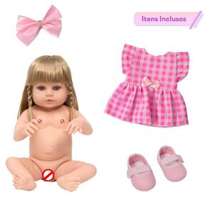 A Boneca Bebê Reborn é o sonho das meninas Produzida 100% em vinil siliconado, essa boneca pode sentar, deitar e fazer tudo que a sua imaginação deixar. Com seus detalhes realistas ela é encantadora e apaixonante. Sua criança merece a melhor qualidade de bebê reborn