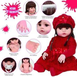 A nossa empresa tem a missão de garantir a total satisfação de seus clientes, onde a qualidade e o atendimento excepcional são nossa prioridade Estamos muito felizes em apresentar a Boneca Bebê Reborn para você, um item cuidadosamente selecionado para atender às suas necessidades. Compre agora e experimente a diferença em comprar com a nossa loja.A Boneca Bebê Reborn é o sonho das meninas Produzida 100% em vinil siliconado, essa boneca pode sentar, deitar e fazer tudo que a sua imaginação deixar. Com seus olhos castanhos e detalhes realistas ela é encantadora e apaixonante. Sua criança merece a melhor qualidade de bebê reborn Marca: Cegonha Reborn DollsModelo: Boneca Bebê RebornCor: BegeMaterial: Vinil Siliconado AtóxicoCaracterísticas Principais: Membros Articulados, Corpo de Silicone, Detalhes Realistas.Medidas Aprox.: Altura da Boneca: 52cm Peso Aprox. Da Boneca: 0,745 Kg Certificado INMETRO Recomendado para crianças maiores de 03 anosConteúdo:1 Bebê Reborn Cabeça, Membros e Corpo de Vinil 1 Conjunto de Roupa Luxo1 Par de Cílios1 Par de Brinco1 Chupeta1 Mamadeira Simples5 Certificados2 Fraldas1 Laço CetimGarantia30 dias de garantia oferecida pelo fabricante.Dúvidas Frequentes:1. Ela acompanha ItensR. Sim, todos os itens da descrição.2. Ela emite algum somR. Não, ela não emite nenhum som.3. Pode dar banho na bonecaR. Sim, pois o material do corpo é de Silicone.4. Pode escolher a cor dos olhos da bonecaR. Não, os olhos já vêm de fábrica.Tags: Boneca, Bebe, Reborn, Realista, Menina, Infantil, Silicone, Bailarina, Princesa, Linda, Fofa, Banho, Enxoval, Completo, Grande, Baby Alive.Homologação Inmetro: 00717/2021-BRINQ-2