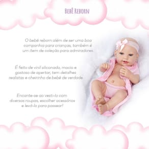 A nossa empresa tem a missão de garantir a total satisfação de seus clientes, onde a qualidade e o atendimento excepcional são nossa prioridade Estamos muito felizes em apresentar a Boneca Bebê Reborn Lara para você, um item cuidadosamente selecionado para atender às suas necessidades. Compre agora e experimente a diferença em comprar com a nossa loja.A Boneca Bebê Reborn Lara é o sonho das meninas Produzida 100% em vinil siliconado, essa boneca pode sentar, deitar e fazer tudo que a sua imaginação deixar. Com seus olhos claros e detalhes realistas ela é encantadora e apaixonante. Sua criança merece a melhor qualidade de bebê reborn Marca: Cegonha Reborn DollsModelo: Boneca Bebê Reborn LaraCor: BegeMaterial: Vinil Siliconado AtóxicoCaracterísticas Principais: Membros Articulados, Corpo de Silicone, Detalhes Realistas.Medidas Aprox.: Altura da Boneca: 52cm Peso Aprox. Da Boneca: 0,745 Kg Certificado INMETRO Recomendado para crianças maiores de 03 anosConteúdo:1 Bebê Reborn Lara Cabeça, Membros e Corpo de Vinil 1 Conjunto Saída de Banho1 Par de Cílios1 Par de Brinco1 Chupeta 1 Mamadeira Simples5 Certificados3 Fraldas1 Laço Cetim2 Presilhinhas1 Par de Luvas1 Bolsa Maternidade1 Prendedor de ChupetaKit Pente e Escova SimplesGarantia30 dias de garantia oferecida pelo fabricante.Dúvidas Frequentes:1. Ela acompanha ItensR. Sim, todos os itens da descrição.2. Ela emite algum somR. Não, ela não emite nenhum som.3. Pode dar banho na bonecaR. Sim, pois o material do corpo é de Silicone.4. Pode escolher a cor dos olhos do bonecoR. Não, os olhos já vem de fábrica.Tags: Boneca, Bebe, Reborn, Realista, Menina, Infantil, Silicone, Bailarina, Princesa, Linda, Fofa, Banho, Enxoval, Completo, Grande, Baby Alive.Homologação Inmetro: IP-BRI-0261/2022-05