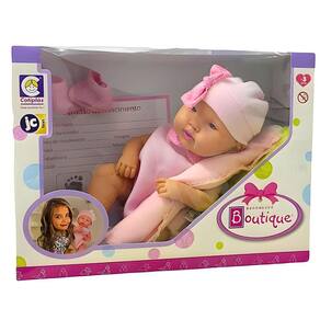 Boneca Boutique Berenguer Deitada - Cotiplás A adorável boneca Boutique Merenguer Deitada, que promete encantar crianças e colecionadores com seu realismo e detalhes encantadores. Esta boneca super fofa é toda em vinil macio, proporcionando uma sensação ao toque que lembra a pele de um bebê verdadeiro, além de exalar um suave cheirinho de bebê que aumenta a experiência sensorial. A Boutique Merenguer Deitada vem acompanhada de uma delicada touca e um par de meias, além de uma mantinha super fofa que a mantém aconchegante. Pensando em proporcionar uma experiência ainda mais autêntica, ela tem um peso cuidadosamente equilibrado, simulando a sensação de segurar um bebê de verdade. Como toque final, a boneca inclui uma certidão de nascimento, tornando a brincadeira ainda mais envolvente e divertida, permitindo que a criança ou o colecionador personalize o nome e os detalhes do nascimento da boneca. Esta boneca não é apenas um brinquedo, mas uma companheira perfeita para momentos de carinho e imaginação. Código: 102091 Dimensões aprox. da embalagem em cm: 14x38x28 Peso liq. Aproximado do produto na embalagem: 772g Referência do Modelo: 2334 Certificado Inmetro: 008347/2021 Conteúdo da Embalagem: 01 Boneca, 01 Par de meias, 01 Certidão, 01 Manta Composição/material : Vinil, Plástico, Tecido Idade recomendada: a partir de 3 anos Garantia: 90 dias contra defeitos de fabricação pelo fabricante. Imagens meramente ilustrativas. As cores e tonalidades podem variar. Obs: Produto composto por sortimento de modelos, que podem variar com relação a disponibilidade de estoque. Ao confirmar a compra você recebera um dos modelos disponíveis em nosso estoque. Gênero - Meninas Meninos Unissex Idade - 3 anos 4 anos 5 anos 6 anos 7 anos 8 Anos Coleção - Colecionável Tipo de Boneca - Acessórios para Bonecas Bonecas Bebê Casas e Cenários para Boneca Ean: 7896964623347