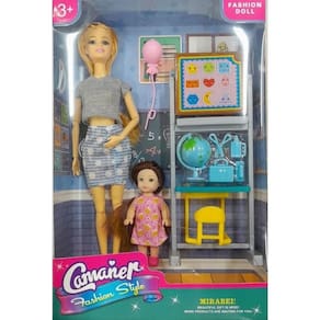 A Boneca Camaner Professora com 9 Peças N2442459, da Quanhe é o presente ideal para estimular a imaginação e o aprendizado das crianças. Com um conjunto completo que inclui uma mesa, carteira, globo terrestre, lousa, professora e aluna, essa boneca permite que as crianças criem cenários educativos e interativos, promovendo brincadeiras que imitam o ambiente escolar.