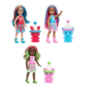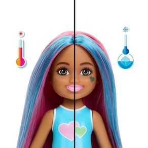 As bonecas Barbie Chelsea Pop Reveal Shakes oferecem uma experiência sensorial com cinco surpresas! Ao abrir a embalagem inspirada em uma caixa de leite, as crianças encontram uma boneca Chelsea perfumada Qual boneca você vai revelar Há uma Unicórnio Doce, Gatinho Fofo ou Coelhinho Brilhante Continuar abrindo para encontrar duas bolsas misteriosas e um cubo de gelo com uma surpresa dentro - abrí-lo para descobrir um par de sapatos ou botas! O cubo de gelo é reutilizável - repitir a diversão de estourar para revelar a surpresa várias vezes Os sacos misteriosos contêm uma saia, um pop-it pet e um chapéu de festa para o pet usar! Descubrir mais surpresas com as transformações que mudam de cor no rosto da boneca Chelsea As crianças vão querer conhecer todas elas! Cada boneca é vendida separadamente, sujeita à disponibilidade As bonecas não podem ficar em pé sozinhas As cores e as decorações podem variar