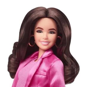 Saudações direto da Barbie Land! Inspirada na personagem Gloria em Barbie O Filme, esta boneca colecionável da Mattel dá as ordens em seu terninho todo rosa, grandes cachos volumosos e impressionantes saltos plataforma multicoloridos. Fale sobre o poder do rosa! Comemorando o lançamento de Barbie O Filme, essa boneca Glória é um ótimo presente para fãs e colecionadores! Vem com acessórios e suporte de boneca incluído. A boneca não fica em pé sozinha. As cores e as decorações podem variar. Indicado para crianças a partir de 6 anos.