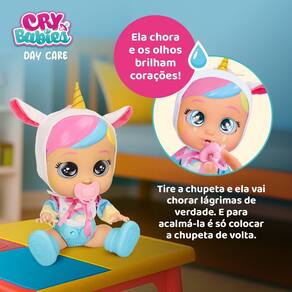 A Cry Babies Dreamy e a companhia perfeita para deixar as brincadeiras mais emocionantes. Essa boneca super fofa chora lagrimas de verdade e emite sons iguais aos de um bebe de verdade!