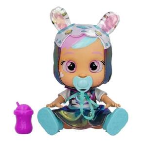 Dê a ela uma chupeta ou uma mamadeira para evitar que ela chore. Quando você tira a chupeta dela, ela chora lágrimas de verdade e seus olhos brilham como estrelas! Veja seus olhos brilharem como estrelas tão brilhantes quanto o céu noturno. Ela emite sons de choro!