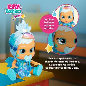 As novas Cry Babies acabaram de aterrissar e estao mais encantadoras do que nunca! Conheca a Sydney, a bebe espacial que vai conquistar seu coracao. Com olhos que choram e brilham como estrelas, ela traz a magia do universo para suas brincadeiras.
