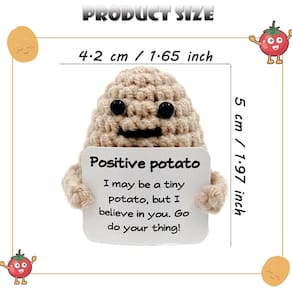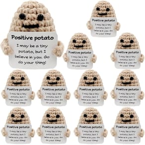 Material: lã Tamanho: Cerca de: 1,97 * 1,65 polegadas / 5 * 4,2 cm. Os produtos incluem: 12 peças * Boneca divertida de batata. Observação: 1. Devido à diferença de luz e tela, a cor do item pode ser ligeiramente diferente das imagens. 2. Considere uma pequena diferença de dimensão devido à medição manual. - A embalagem inclui: você receberá 12 bonecas de batatas fofas e divertidas e 12 cartões impressos com palavras positivas, o cartão é anexado à boneca, cada boneca mede cerca de 4,97 x 1,65 polegadas / 5 x 4,2 cm (Observação: como é feito à mão, é normal que haja uma pequena quantidade de erro no tamanho). - Mini batata de crochê: em nome da amizade, e também colheita, paz, felicidade, positivo, o presente tricotado positivo é um bom desejo e trará boa sorte e felicidade; a vida nem sempre é suave, sempre que encontramos frustração e depressão, isso lhe dará incentivo e ajudará você a superar isso. Vamos lá meu amigo. - Feito à mão: esta boneca de batata é feita à mão de fio de lã, é macia e confortável, delicada ao toque, tem excelente elasticidade e não deforma. O fio de lã não desbota. - Presentes criativos engraçados: esta linda boneca de batata colocará um sorriso na pessoa de quem você gosta. Então, quando você se sentir perdido e chateado, olhe para nossa boneca para lhe trazer incentivo e dar um impulso motivacional. Você vai se sentir relaxado e feliz ao vê-los depois de voltar para casa depois de um dia de trabalho duro. - Presente positivo: nossas batatas de malha são a melhor escolha para presentes para vários feriados, como Natal. Você pode levá-la como um presente para sua família, namorada, namorado, crianças e amigos no aniversário, casamento, ano novo, festas, feriados, etc. Também pode ser utilizado para decorar o quarto, deixando seu quarto mais bonito.